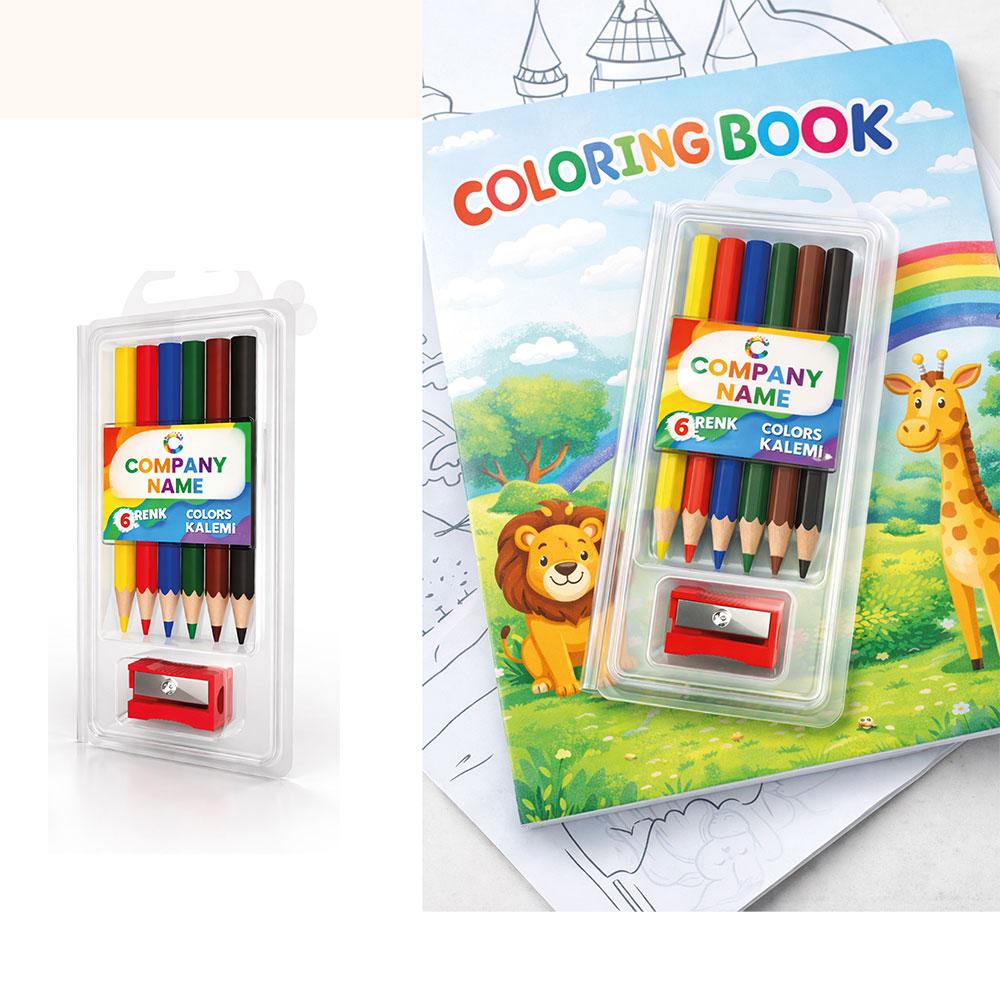 Kalemtıraşlı Yarım Boy Kuru Boya (6 Adet)